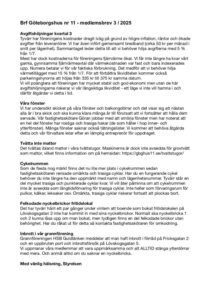 nu finns senaste nyhetsbrevet att hitta under ”Medlemsinformation” Nyhetsbrev nov 24